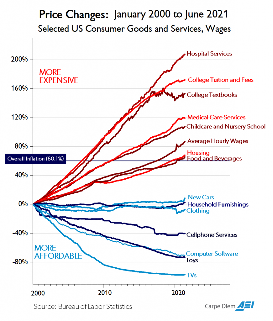 - Electronics, furniture, and clothing keep getting cheaper—for a broad swathe of consumer goods, deflation is to be expected.